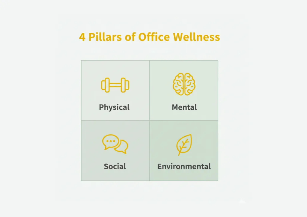 Understanding workplace wellbeing requires looking beyond simple exercise advice. Health experts identify four interconnected pillars that support sustainable office wellness: