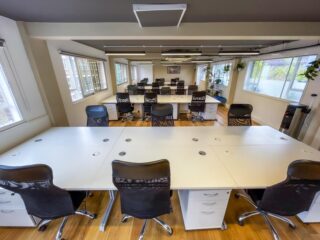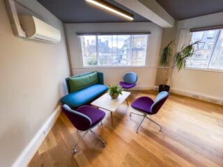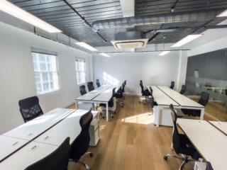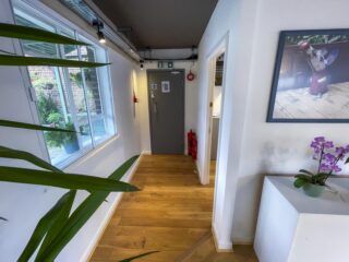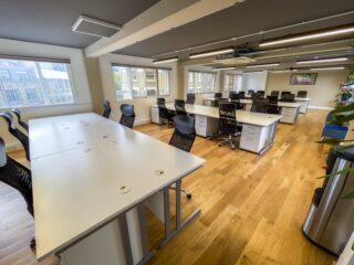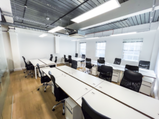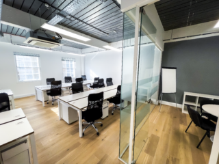 Includes 2 private meeting rooms and is located besides our quiet roof garden. Kitchen and breakout spaces are available throughout the building.