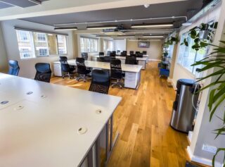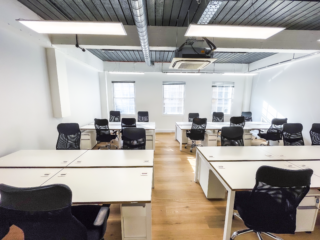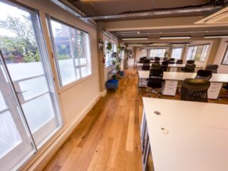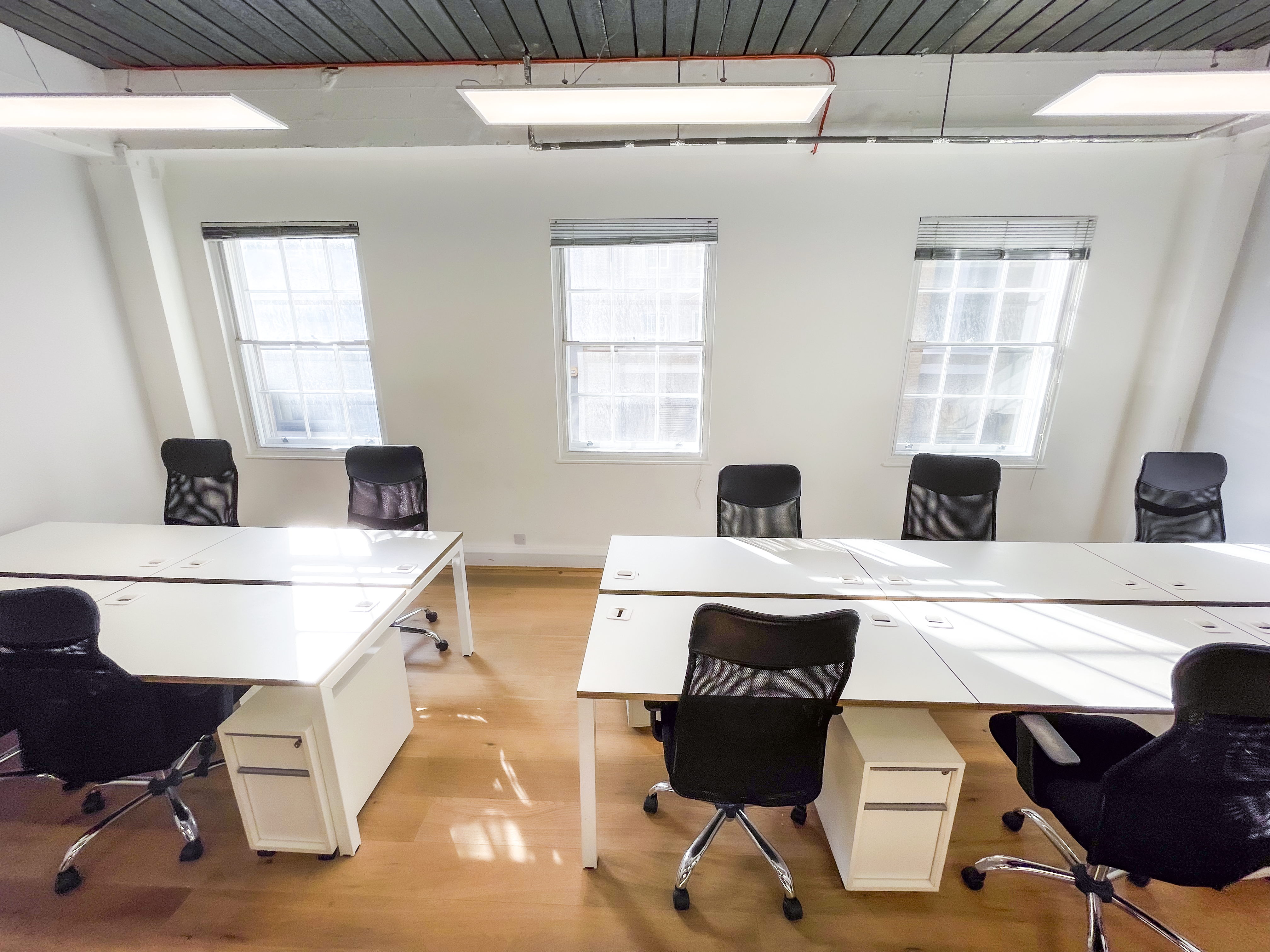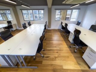 Fourth-floor office besides our quiet roof garden. Kitchen and breakout spaces available throughout the building.